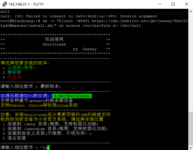 export url='https://raw.githubusercontent.com/juewuy/ShellCrash/master' && sh -c "$(curl -kfsSl $url/install.sh)" && source /etc/profile &> /dev/null