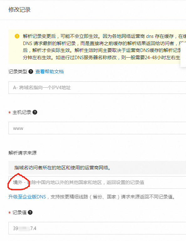 查了一些文章,有提到在阿里云中设置单独的一条域名解析到国外线路。