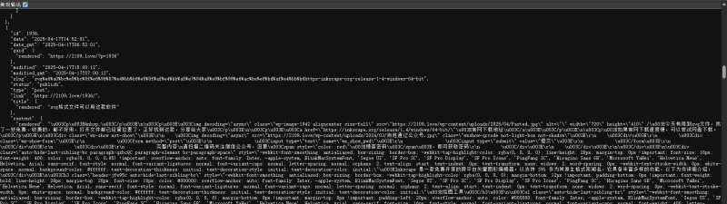 如果你需要使用WordPress自带的REST API,但是域名/wp-json/wp/v2/posts/ 或域名/wp-json/ 不会显示文章代码,如下图