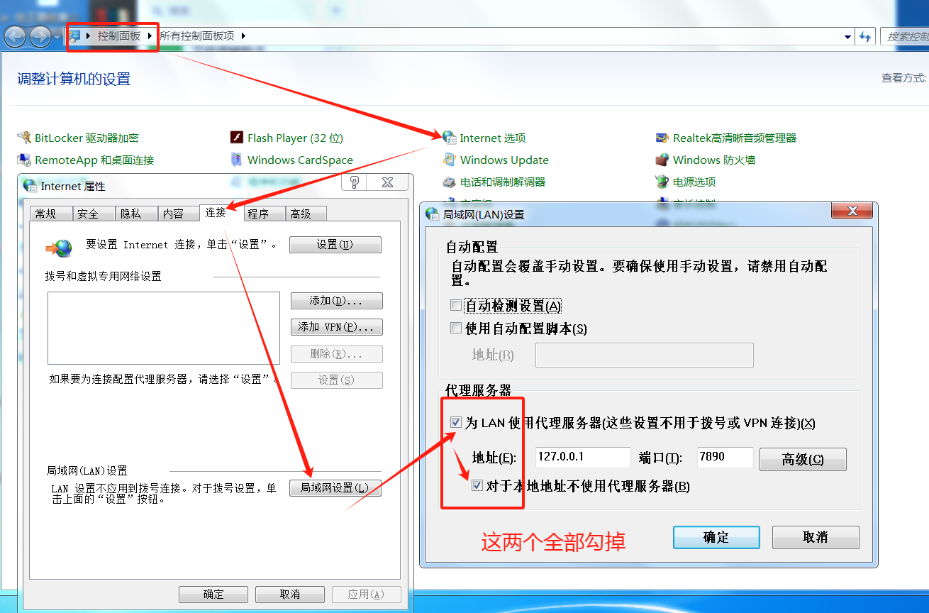 现在位置: 首页 / 心得 / 正文 如果你用过clash,不用时却无法访问网页了,无法上网 塔林 心得 2024-06-28 2热度 0评论 如果你用过clash代理上网,关闭代理或者启动电脑时,发现网页打不开了,但是ping外网还是可以的。网络设置、IP都没问题,那么你可以关闭这个试试。 win10系统 win7系统